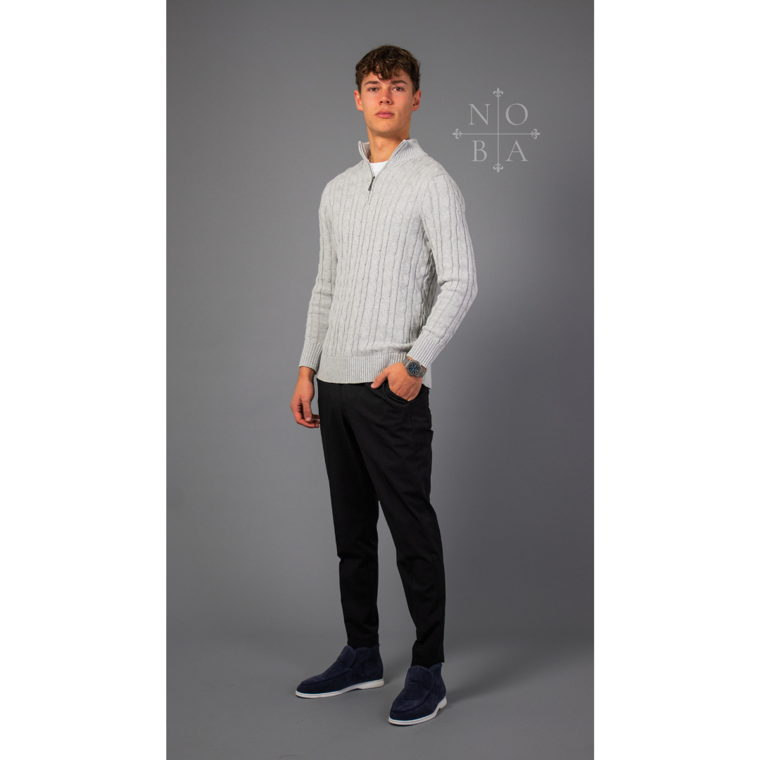 Cotton Cardigan - Gray: Long sleeve sweater made of spun cotton fabric. High neck with front zip fastening collar and ribbed trims.