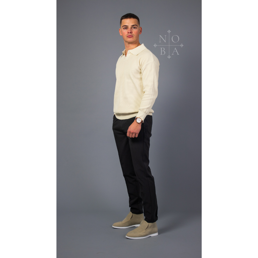 Cotton Polo- Nude: Long sleeve polo made of spun cotton fabric. V-neck and ribbed trims.